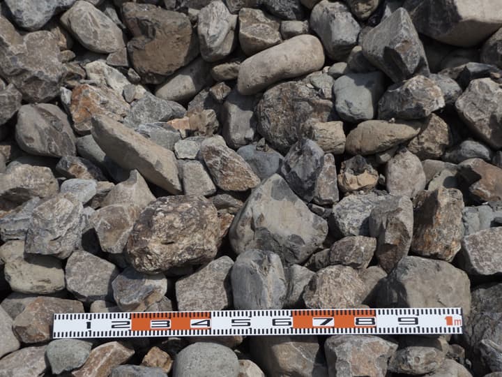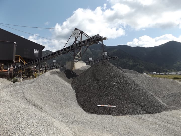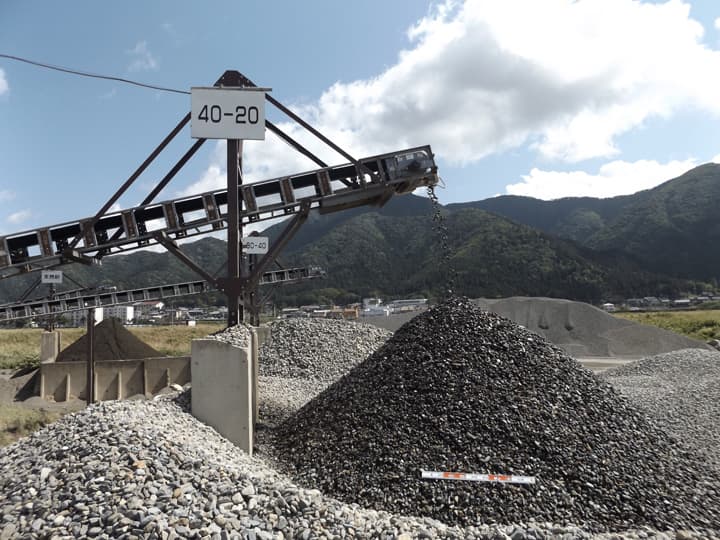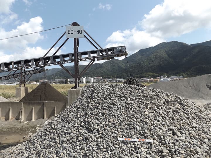 40mm~25mmの大きめの川砂利です。軟弱地盤の補強や石垣の裏込、大型土のう等のつめ石など幅広く利用されています。