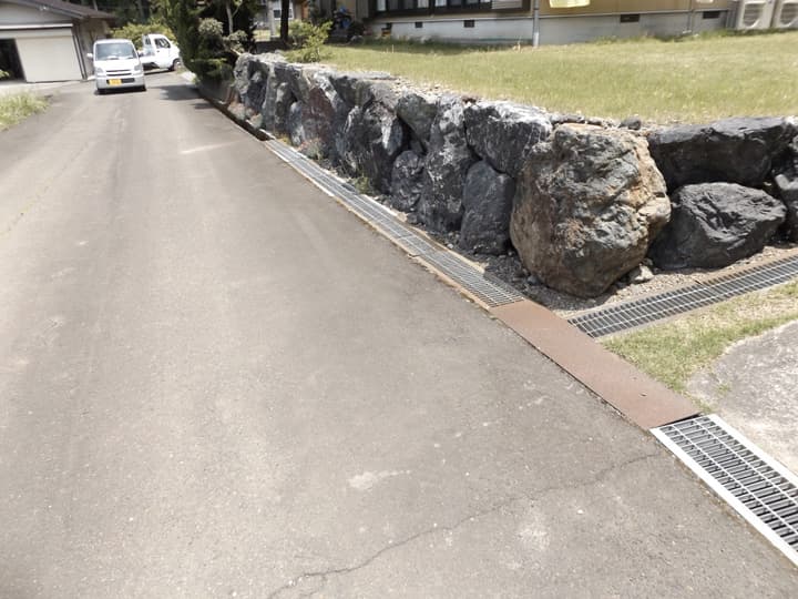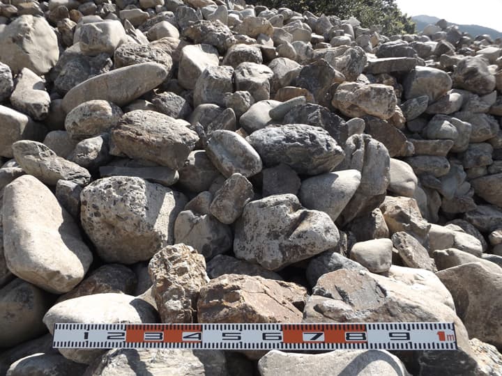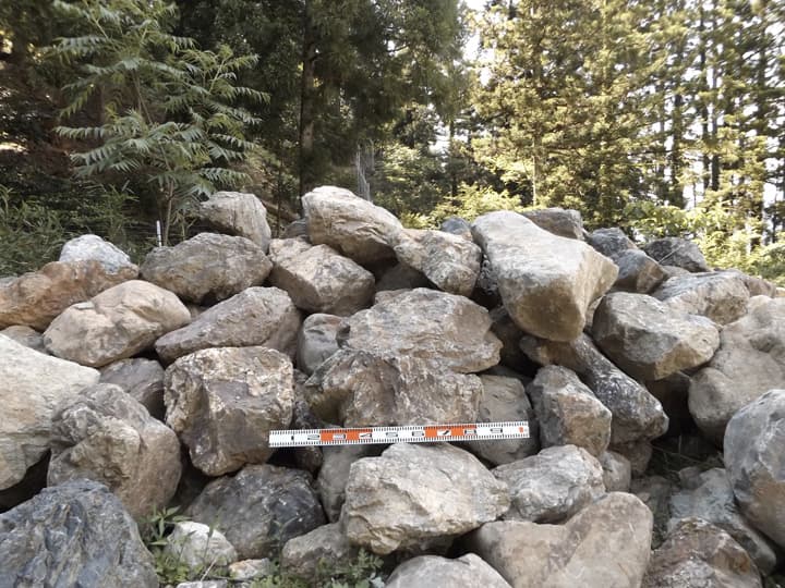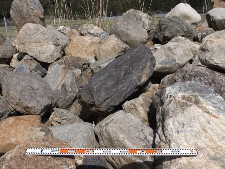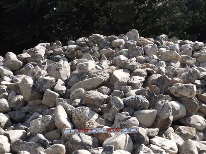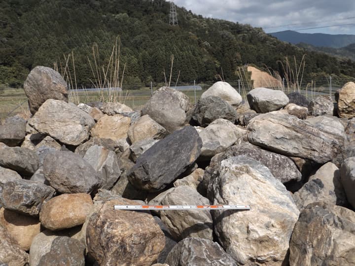 大型土のう等の込め石や石垣に使用されます。なお、石が丸みを帯びているため、土のう袋の破損が割石に比べて少ないです。