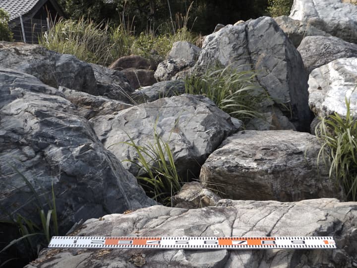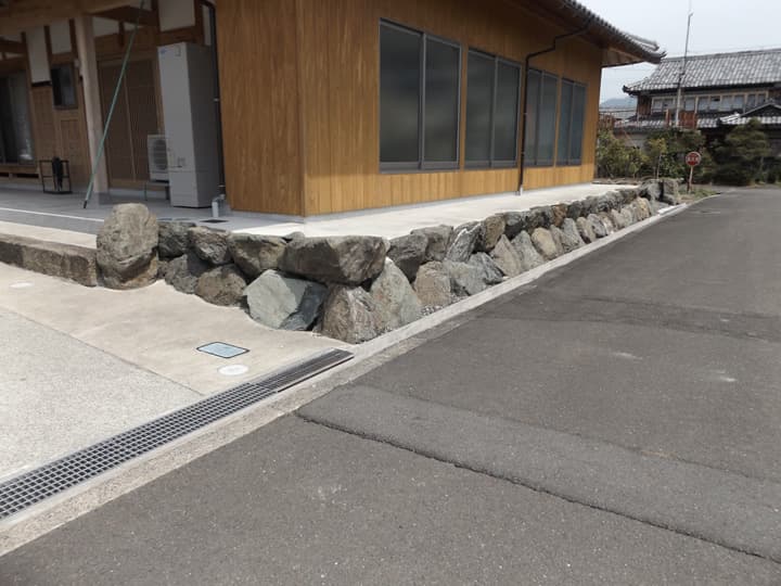 石と石との隙間がなるべく少なくなるように積み上がっています。面がそりあがって積まれています。
